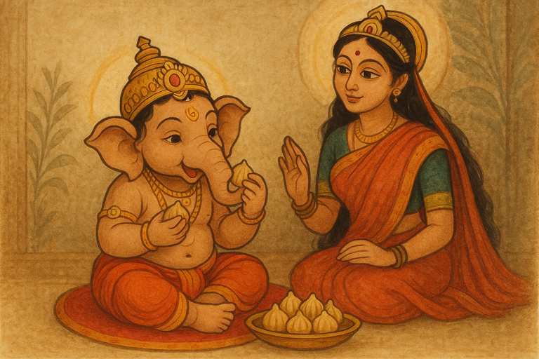 One of the most famous Ganesha stories that explains his fondness for the Modak involves a celestial feast. The gods once presented a special Modak to Goddess Parvati, an ambrosial sweet with extraordinary powers. It was said that a single bite of this Modak
